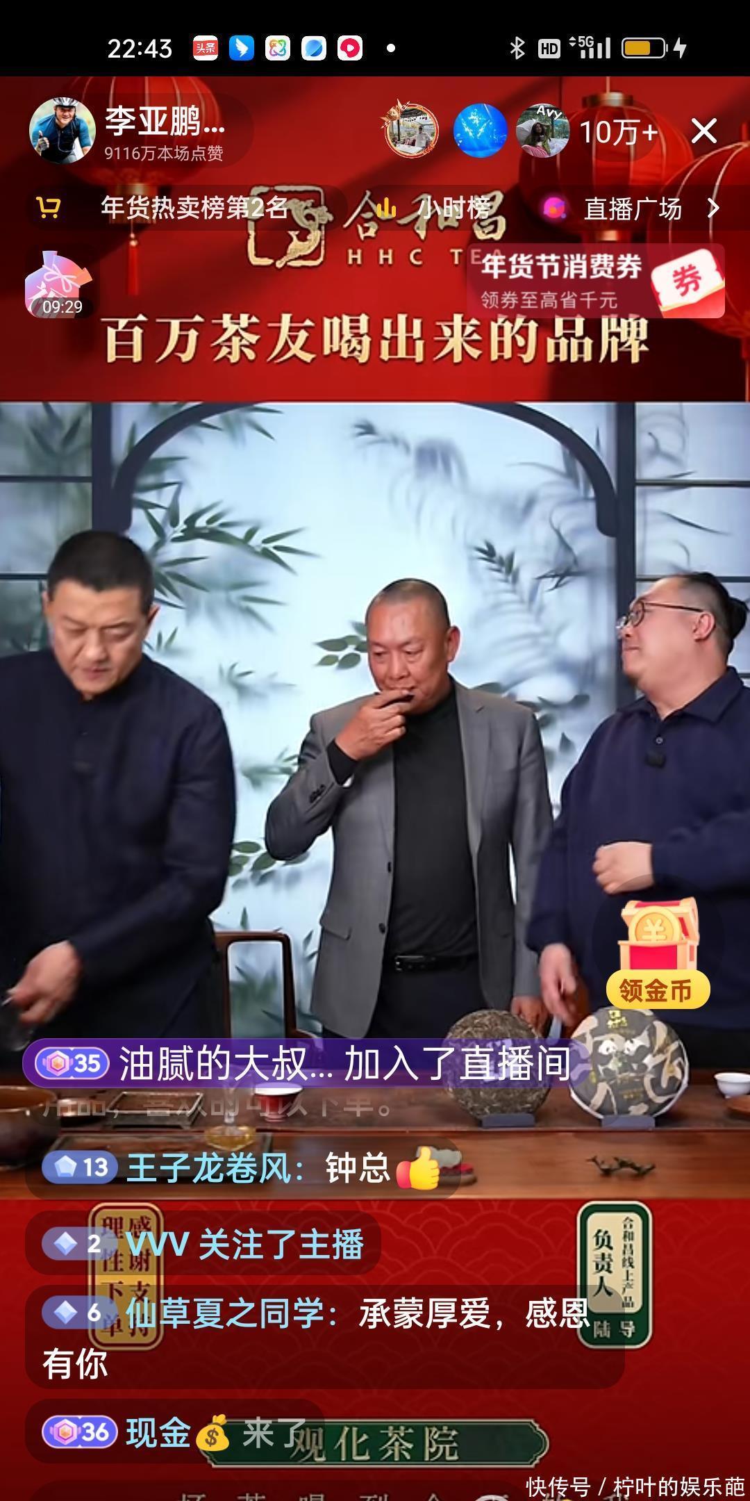 最近李亚鹏的直播间突然火了,一个晚上十万加人在线,卖的茶几乎秒光,以前只有疯狂小杨哥直播有过这阵仗,但李亚鹏直播间不一样,没有吵吵嚷嚷,只有他娓娓道来介绍各种茶,一晚上只卖茶,这在直播界独一份,别人都是什么好卖卖什么,他这样反而卖得好,说不定还带火了不少喝茶的人。